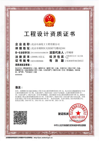 工程設(shè)計甲級資質(zhì)證書