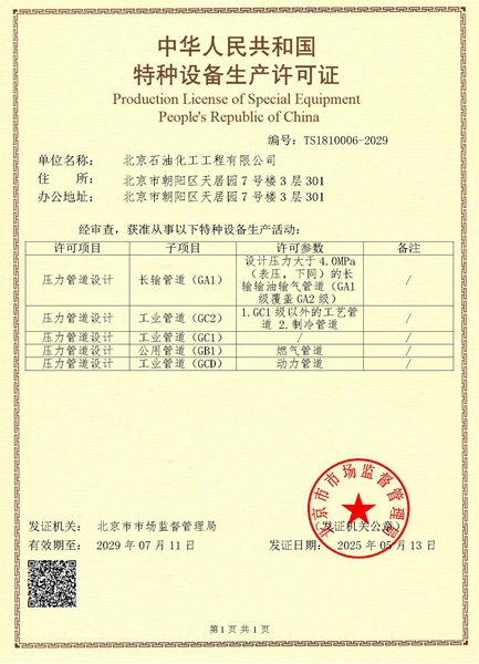 特種設(shè)備設(shè)計許可證(壓力管道)