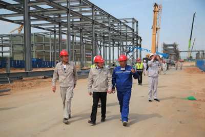 許緘濤檢查了項(xiàng)目現(xiàn)場(chǎng),聽取了項(xiàng)目關(guān)于安全、質(zhì)量、進(jìn)度等方面工作情況匯報(bào)。他指出,榆神能化項(xiàng)目是延長(zhǎng)石油集團(tuán)及我公司的重點(diǎn)工程,建設(shè)情況受到廣泛關(guān)注。公司對(duì)項(xiàng)目建設(shè)情況高度重視,項(xiàng)目全員要提高認(rèn)識(shí),形成共識(shí),按照施工計(jì)劃高標(biāo)準(zhǔn)完成任務(wù);緊盯“10?30鍋爐具備點(diǎn)火條件”節(jié)點(diǎn)目標(biāo),強(qiáng)化時(shí)間觀念和效率意識(shí),搶進(jìn)度、抓質(zhì)量、保安全,確保項(xiàng)目建設(shè)重大節(jié)點(diǎn)順利實(shí)現(xiàn)。同時(shí),他對(duì)不畏酷暑、奮戰(zhàn)在一線的員工表示慰問,并叮囑大家要?jiǎng)谝萁Y(jié)合,合理安排作息時(shí)間,安全生產(chǎn),平安度夏。