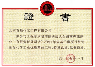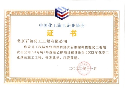 近日,由北京石油化工工程有限公司(簡(jiǎn)稱:北油工程)總承包的榆神能化50萬(wàn)噸/年煤基乙醇項(xiàng)目獲得中國(guó)化工施工企業(yè)協(xié)會(huì)頒發(fā)的“2022年度化學(xué)工業(yè)優(yōu)質(zhì)精品工程”、“2022年度化學(xué)工業(yè)安全文明工地”及“2022年度化學(xué)工業(yè)綠色施工工程”等三項(xiàng)殊榮。