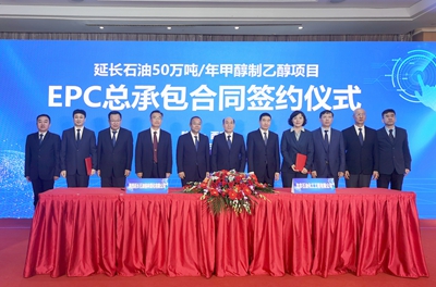 許緘濤在致辭中表示,凱越煤化50萬噸/年甲醇制乙醇項目是繼興化、榆神乙醇項目之后,北油工程與延長集團在乙醇領域的又一次友好合作。公司將嚴格按照合同約定,本著精益求精的工匠精神,精心選派設計、采購和施工管理的精兵強將,認真總結已建成乙醇項目經驗,持續優化工藝流程和設備選型,科學組織好項目建設各階段工作,確保將凱越乙醇項目建設成為工藝流程更優、能耗水平更低、產品質量更好的綠色工程、精品工程、效益工程。據悉,該項目是延長集團積極推進"穩油增化"戰略,進一步延伸產業鏈、實現產品轉型升級的重點建設項目,也是北油工程鞏固拓展延長石油市場、全力打造乙醇明星產品、全面提升企業信譽口碑的重要依托工程。