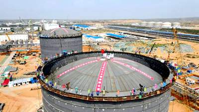 本次儲罐穹頂頂升作業,延長石油集團公司投資與項目管理部相關負責人,煉化公司黨委書記、總經理烏忠理,副總經理馮奇國,天然氣股份有限公司總經理高買華,北油工程公司黨委書記、董事長許緘濤,陜西化建工程有限責任公司總經理李科社,以及各參建方代表進行了現場觀摩。