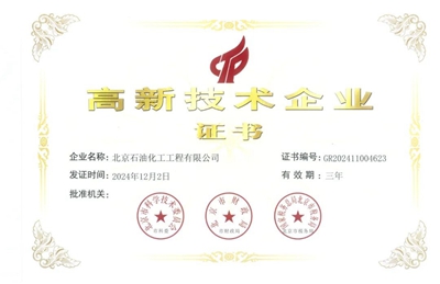 近日,北京石油化工工程有限公司再次榮獲國家高新技術企業證書,標志著公司在高新技術領域的發展邁上了新的臺階。此次證書的獲得,不僅是對公司過去在科技創新方面所取得成就的肯定,更是對未來發展的激勵和鞭策。