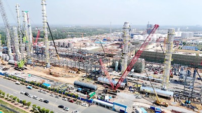 作為項(xiàng)目核心參建方,北油工程負(fù)責(zé)全場(chǎng)總體院及基礎(chǔ)設(shè)計(jì)、總承包20萬(wàn)噸/年乙醇裝置(含電子級(jí)乙醇)工程。目前,乙醇裝置總體進(jìn)度已完成56%,大件設(shè)備吊裝進(jìn)度達(dá)60%。項(xiàng)目充分利用荊門(mén)化工園區(qū)盈德氣體提供的甲醇、CO等原料資源,有效延伸碳一化工產(chǎn)業(yè)鏈,對(duì)荊門(mén)打造千億級(jí)鋰電產(chǎn)業(yè)集群具有戰(zhàn)略意義。