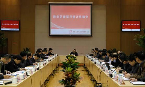為了確保集團公司年度固定資產投資整體目標的順利實施,推進集團重點項目的建設工作,2013年3月26日,由集團公司副總經理馮和平帶隊,集團公司工程管理部、煉化公司、延安煉油廠、榆林煉油廠、安源化工公司、榆林煤化工公司、油煤新技術開發公司、陜西化建公司相關領導到北京工程公司舉行了集團陜北區域項目設計協調會。